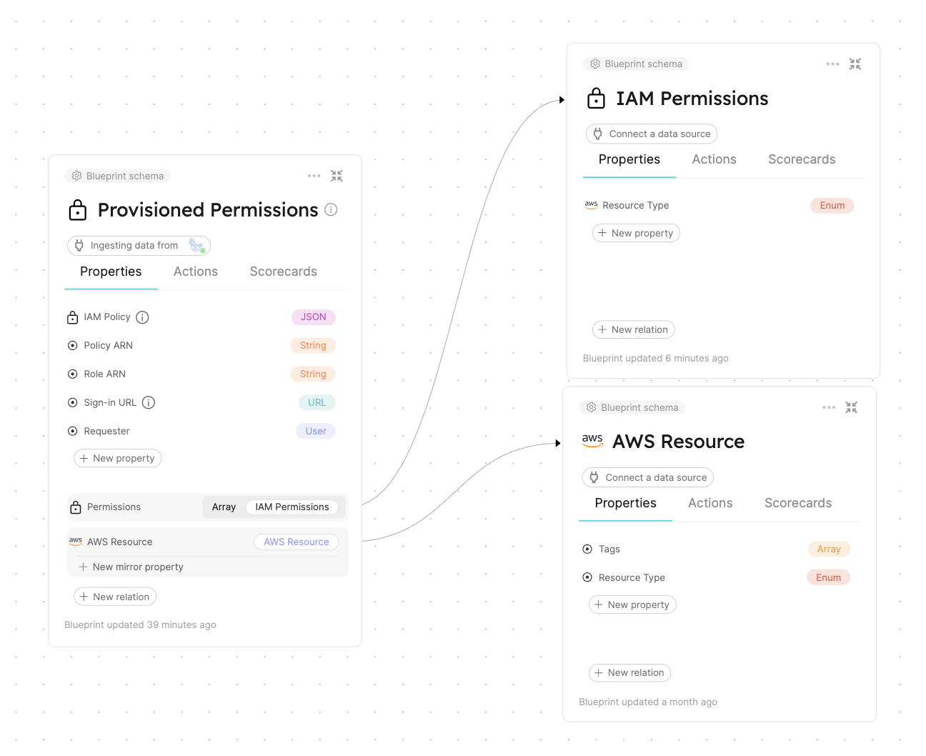 The entities of this blueprint represent different AWS resources we want to manage IAM permissions for (S3 buckets, EC2 instances, etc.).